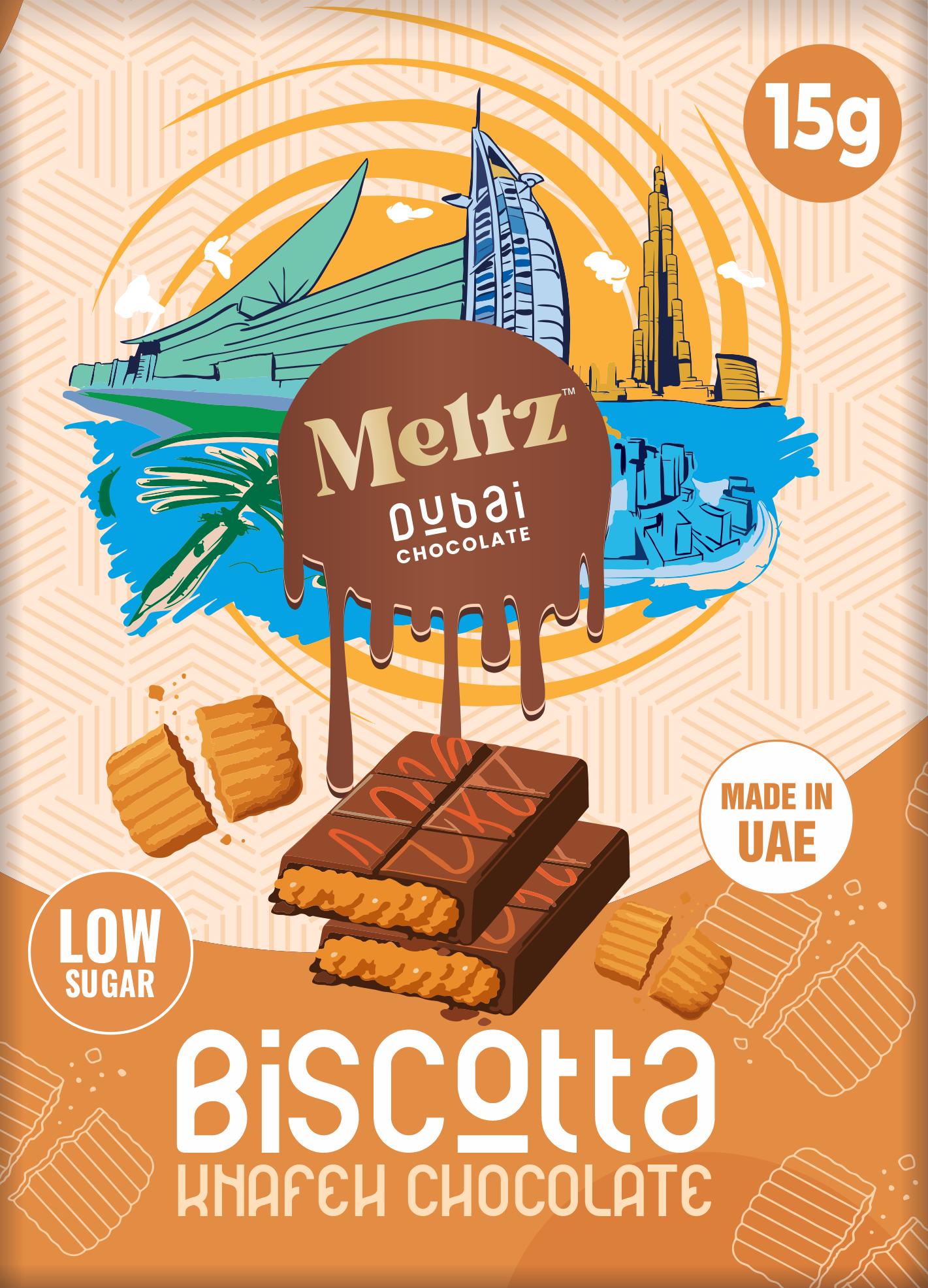 Savor the warmth of spiced caramelised biscuit embraced by rich, silky chocolate and layers of golden knafeh. Each bite offers a perfect blend of crunch, creaminess, and aromatic sweetness — a comforting fusion of Middle Eastern tradition and modern indulgence. A truly irresistible treat for those who crave something extraordinary.
